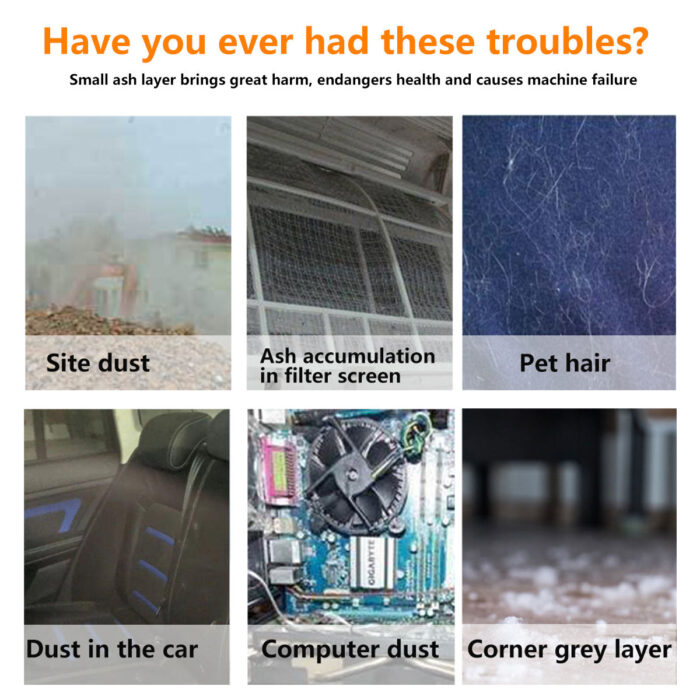 – Clean out the dust of the motherboards, computer case, and power supply. Easily clean dust/hair waste from bedding, corners, bed bottoms, carpets, furniture, etc.