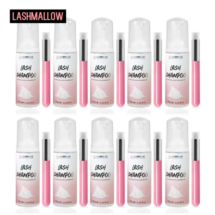 Lashmallow 10 Set Eyelash Shampoo Wholesale Foam Cleanser 60ml Cleaning Mousse with Brush for Lashes Extension Clean Tools