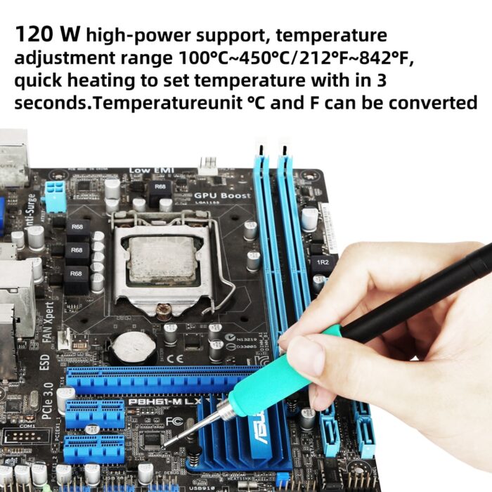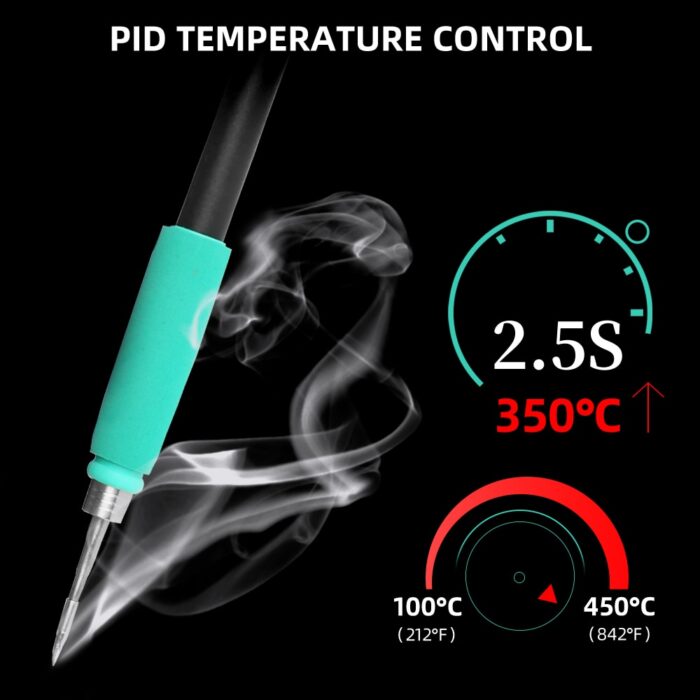Temperature compensation function,the temperature of the soldering iron tip is automatically compensated during the welding process, so that the soldering iron tip is always kept at the set temperature.